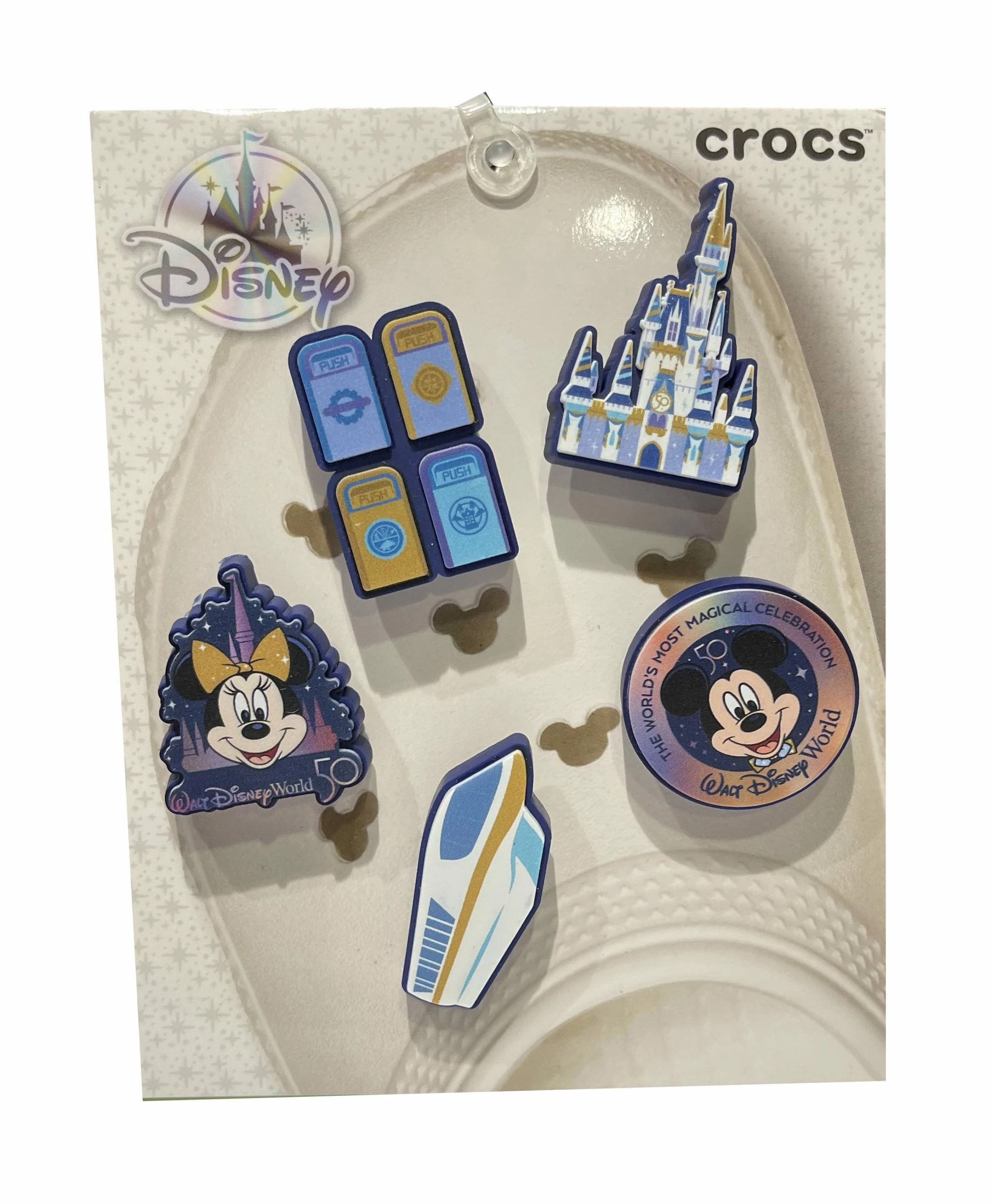 Add some fun to your Walt Disney World Crocs with these 50th Anniversary Jibbitz Charms. Features 5 fun charms to add a magical touch to your crocs this year.