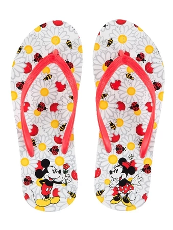 Have some fun in the sun in style with these cute Mickey and Minnie Flip Flops surrounded in flowers. This casual footwear smiles with sunny style for a walk on the beach or anytime.