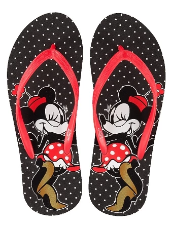 Have some fun in the sun in style with these cute Flip Flops with Minnie Mouse posing with a hat. This casual footwear smiles with sunny style for a walk on the beach or anytime.