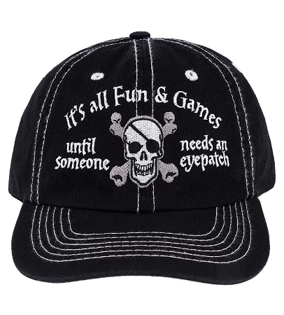 This fun Pirates of the Caribbean Baseball Cap Reads, It’s all Fun and Games until someone needs a eye patch.