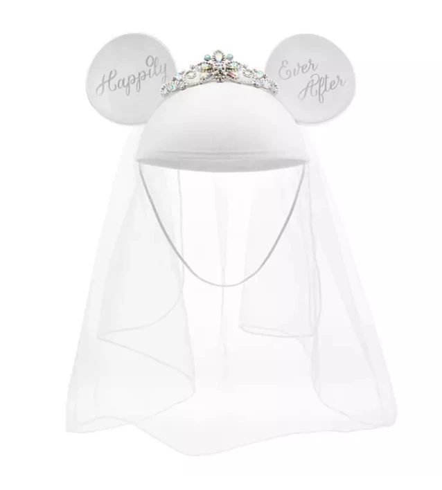 Here comes the bride! Minnie’s glamorous, glittering ear hat, with gem-studded tiara and veil, will send you off to live happily ever after. Find an ear-ternal soulmate in Mickey’s groom ear hat, sold separately. Direct from Disney Parks, the perfect honeymoon destination!