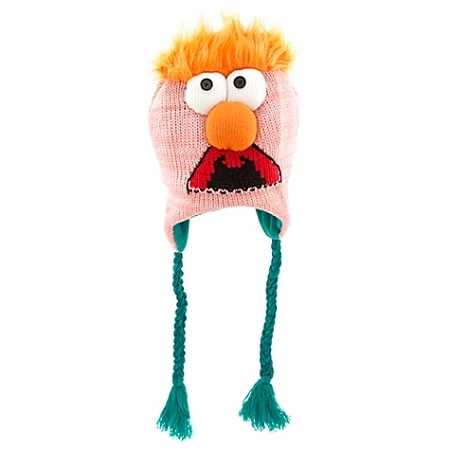 Heat up your fashion formula wearing Beaker’s cool knit cap with a homespun crocheted look on the outside and warm fuzzy fleece in the lining. Bulging button topped eyes and nose, faux fur topper and braided ties add to the Muppets fun.