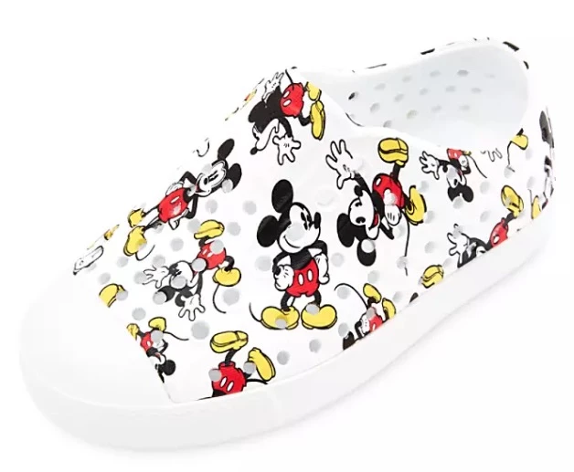 Mickey will give your every step a lift with these lightweight shoes. Our hero strikes a number of poses on this footwear by Native Shoes that features their injection molded EVA construction that is shock absorbent, odor resistant, and hand-washable.