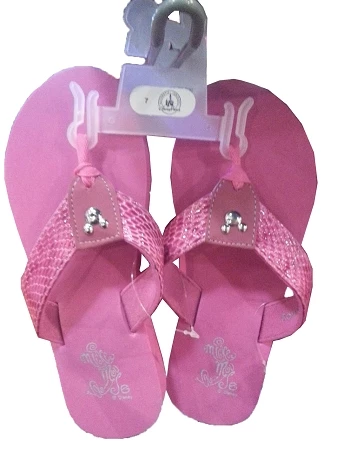 Say hello sparkling fun in the sun with these Mickey cute flip flops. Mickey Icon and Pink Straps make this casual footwear smile with sunny style for a walk on the beach or anytime.