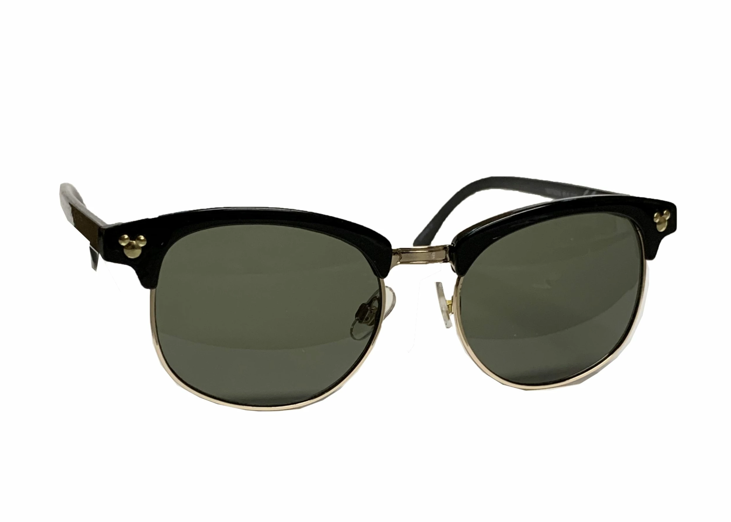 Protect your eyes with these classy Sunglasses. Features a Gold Mickey Icon on each side of the frame, with a gold rim around the lens and black frame.